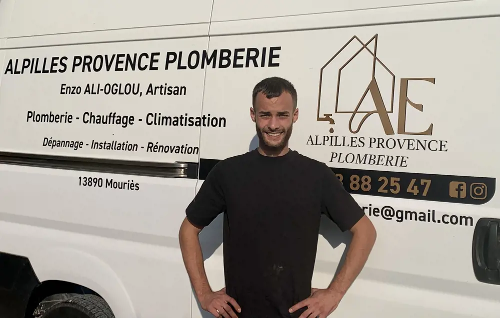 SAS Alpilles Provence Plomberie : Entreprise dirigée par Enzo ALI-OGLOU, Artisan, titulaire de deux diplômes d'Etat (Installateur Sanitaire - Installateur en froid et Conditionnement d'Air), d'une expérience de 7 années dans le métier, et de l'habilitation de manipulation des fluides frigorigènes.